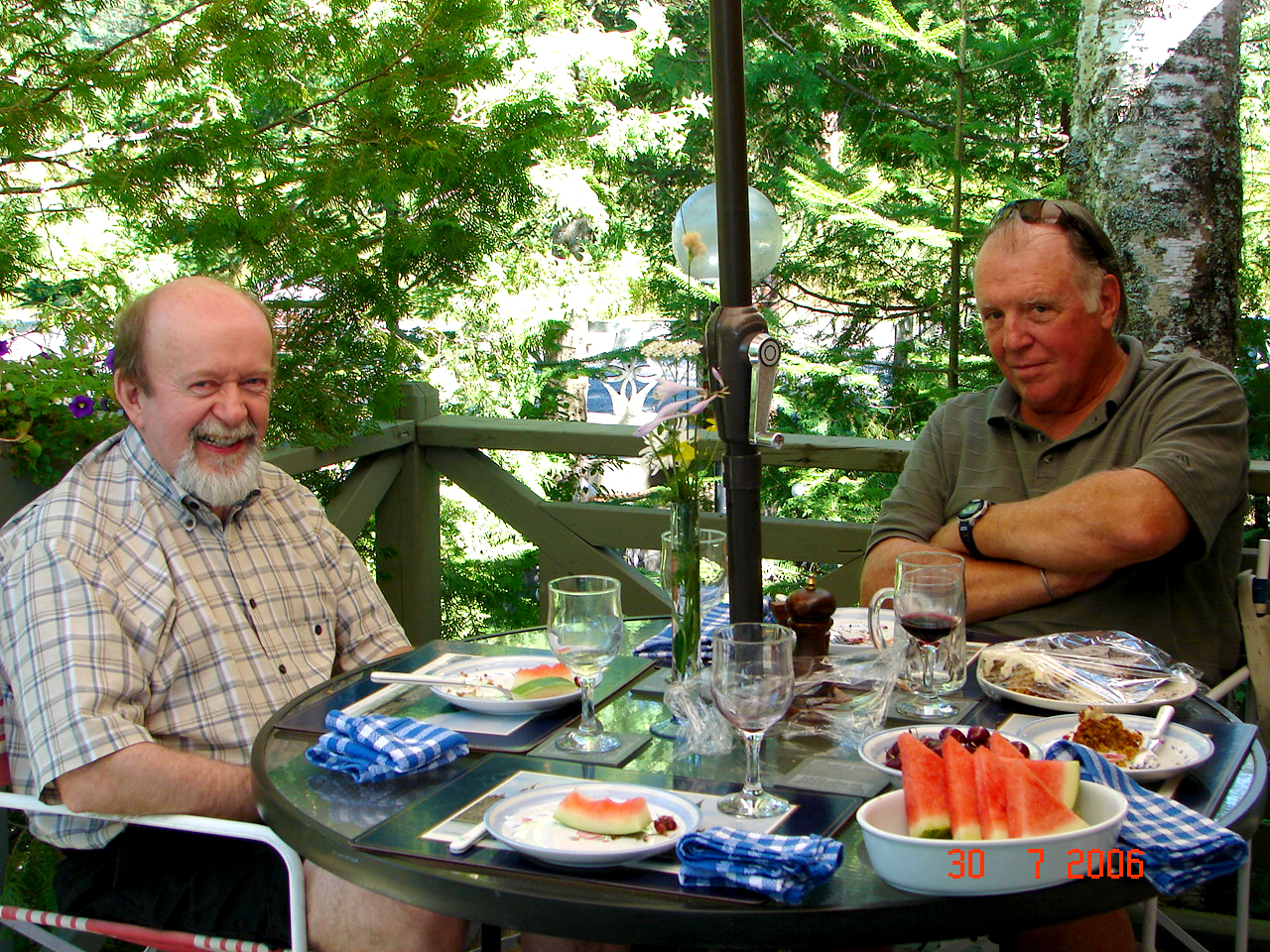 Pas facile de choisir, parmi tous les bons moments que nous avons vécus ensemble au cours de ces 52 années de notre belle amitié, un ou 2 souvenirs à vous partager aujourd’hui! Le premier moment magique passé ensemble fut notre croisière d’une semaine sur le Pouchkine qui nous a fait voyager de Montréal vers les Îles St-Pierre et Miquelon en passant par Québec et le Saguenay-Lac St-Jean. Le 2e souvenir remonte au 31 décembre 2002, lorsque je fus invitée au party annuel du Jour de l’An chez Jojo et Steve, accompagnée de mon nouvel amoureux David. Lorsque Steve nous a ouvert la porte, il a reconnu David qu’il avait connu, dans le passé, lors de nombreuses réunions de médecins organisées par OEMAC. Comme quoi « le monde est petit »!